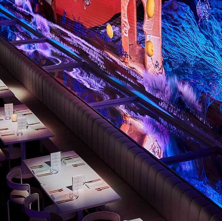 The experience began in the golden lemon orchards of Murcia, where sunlight filtered through citrus trees, evoking warmth, freshness, and the vitality of the Mediterranean. From there, guests were guided through a transition from day to night, an immersive passage that followed the Earth’s natural clock and reflected the passage of time in both visual and emotional tones.