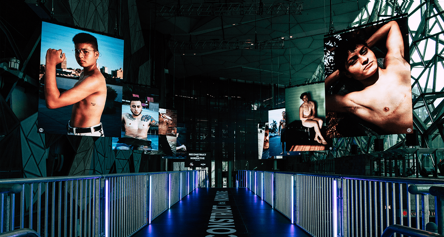Fed Square’s Atrium was transformed for Midsumma Festival into a moving exhibition of photographic portraiture by Australian born photographer Soraya Zaman (they/them/theirs).